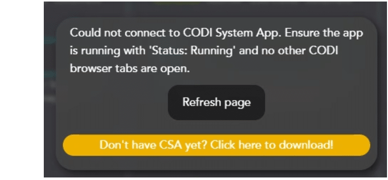 - If prompted to install a new version of CSA, proceed with the install according to the CODI prompts. Remember to reopen CSA after the install is complete.