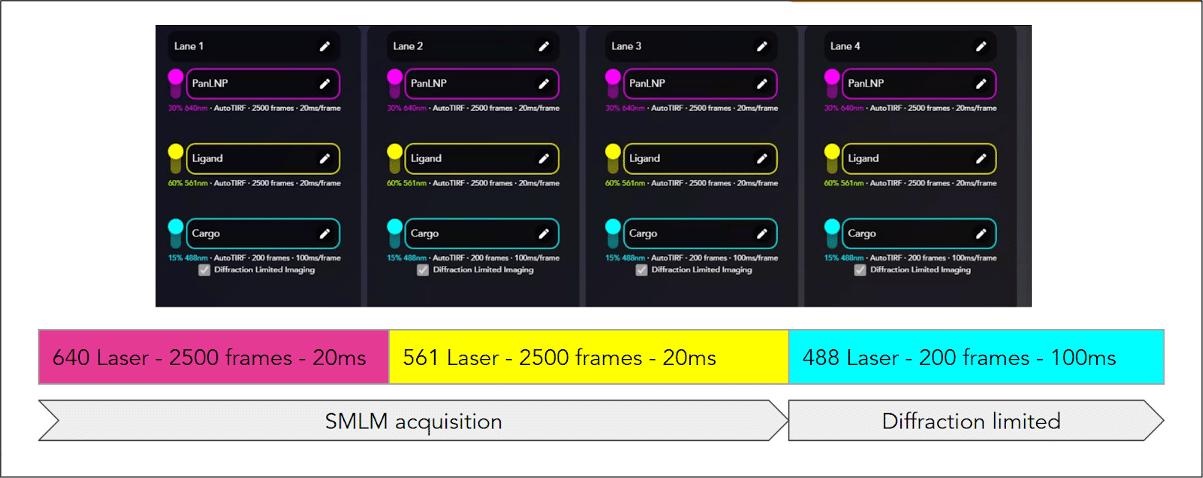 Channel mapping is an essential step towards generating accurate multicolor super-resolution data, and AutoLNP makes channel mapping even easier with a one click channel mapping procedure that optimizes the PanLNP, Ligand and Cargo channels.