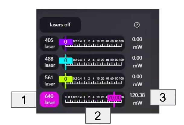 - Switch on the 638 laser to image PanLNP and set its power at 25% as a start.