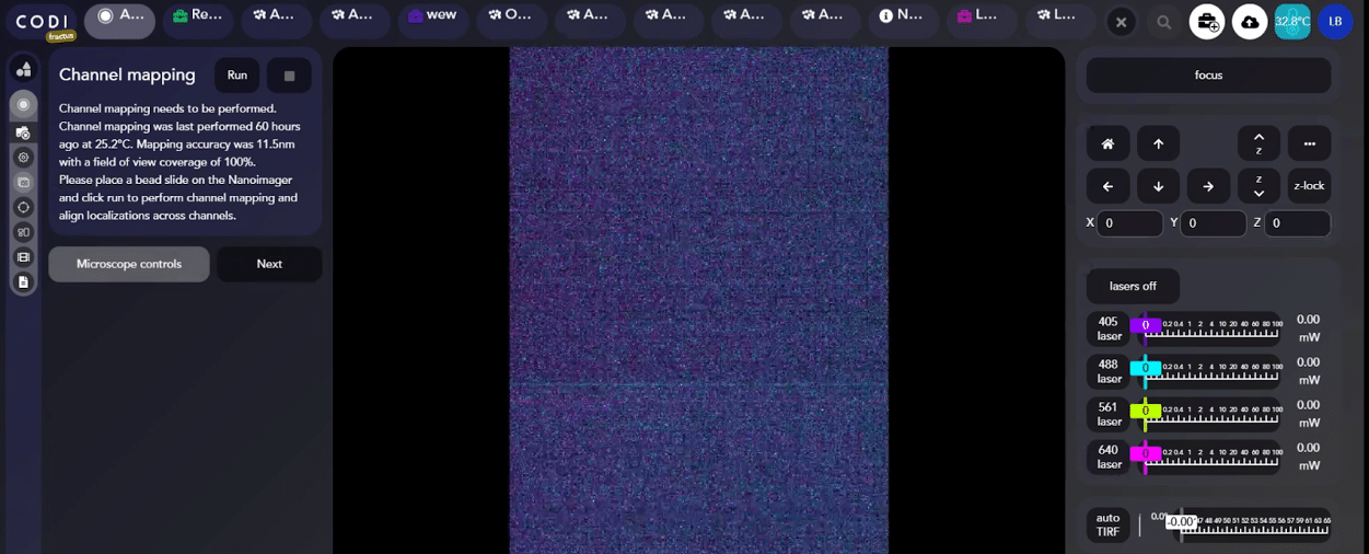- Launch CSA (CODI System App) and allow the temperature of the microscope to reach 32°C. This will provide ample time for the system to reach optimal temperature. If you are using the Nanoimager please wait for 1 hour, while if you are using the Aplo Scope please wait for 2 hours.