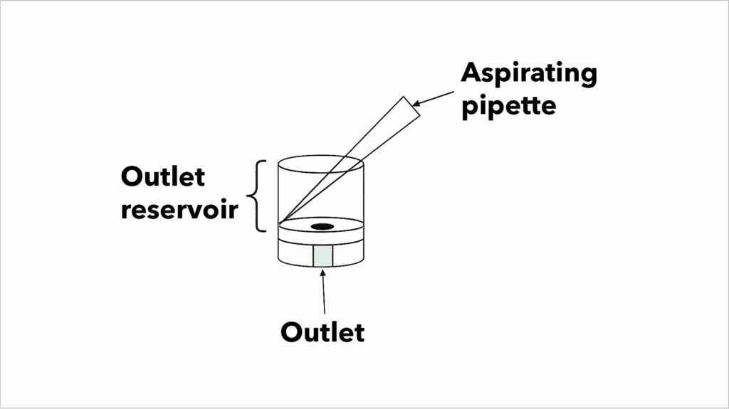 - Remove excess liquid as it flows out of the outlet using a vacuum aspirator placed at the bottom of the outlet reservoir.