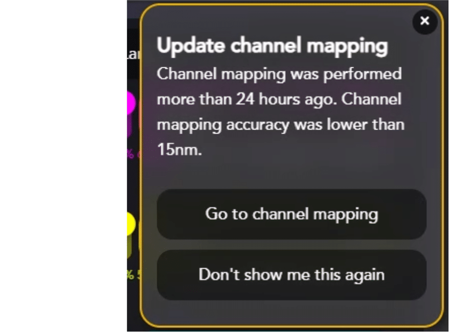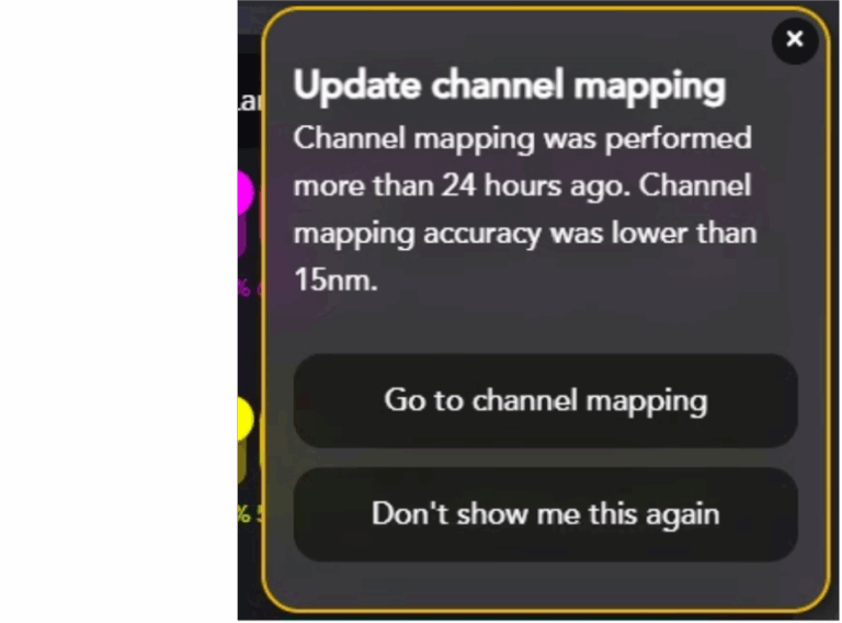 While running channel mapping before the experiment is recommended, if it has been performed recently and that the Aplo Scope temperature is stable, AutoLNP will allow imaging without performing channel mapping, for instance, when imaging more than one chip at once.