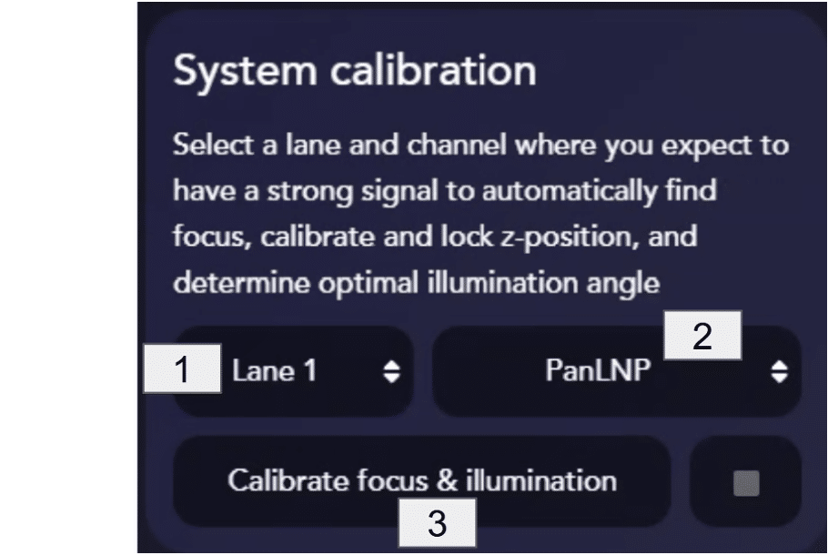 Anytime the LNP Profiler Assay Chip is placed on the Aplo Scope, the system calibration step should be performed to ensure optimal autofocus and AutoTIRF.
